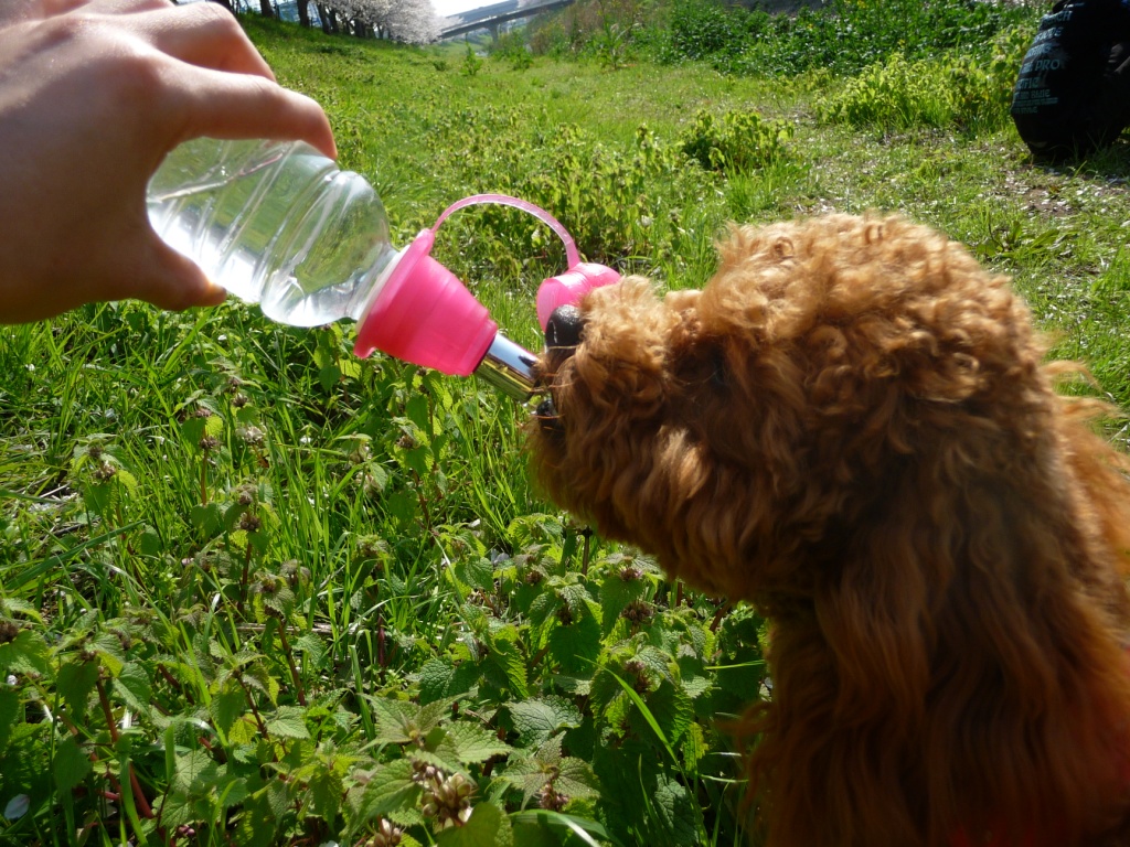息子ちゃんはオヤツとポカリ。タロはお茶。チョコは水です。