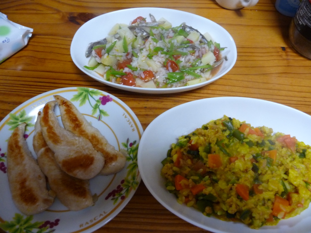 写真下右→人参・ピーマン・カボチャ・鳥ミンチ・米