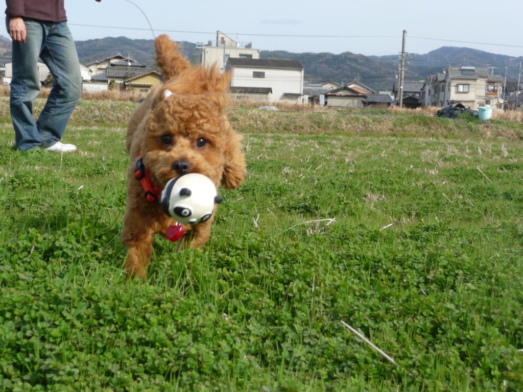 パンダちゃんで取って来いで遊んで満足そうです。