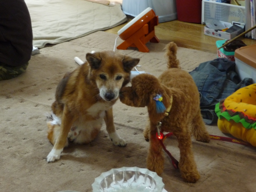 前はガウガウ犬だったミーコちゃんも歳のせいかチョコにも友好的でした。