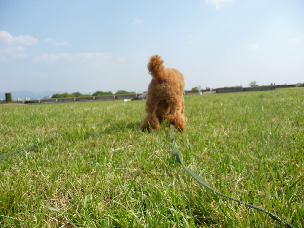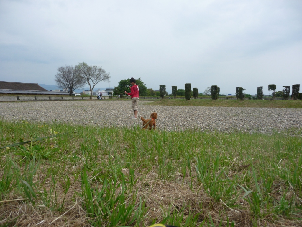 ロングリードを持っていそいそ出かけたものの、まったく動かないチョコでした。