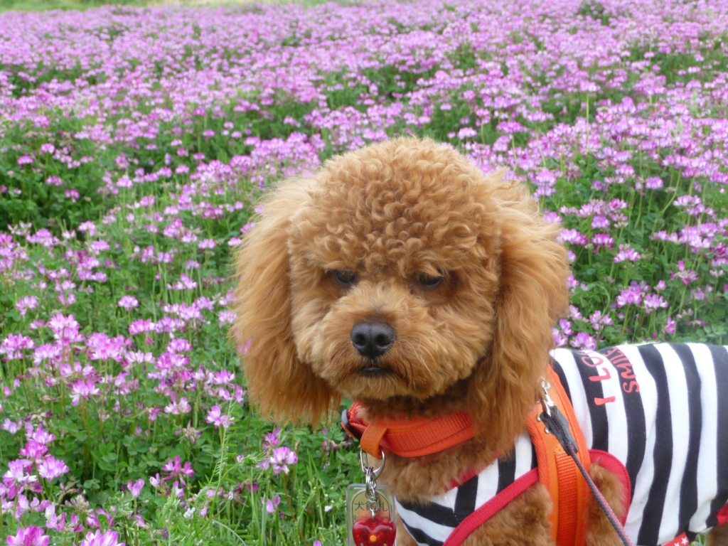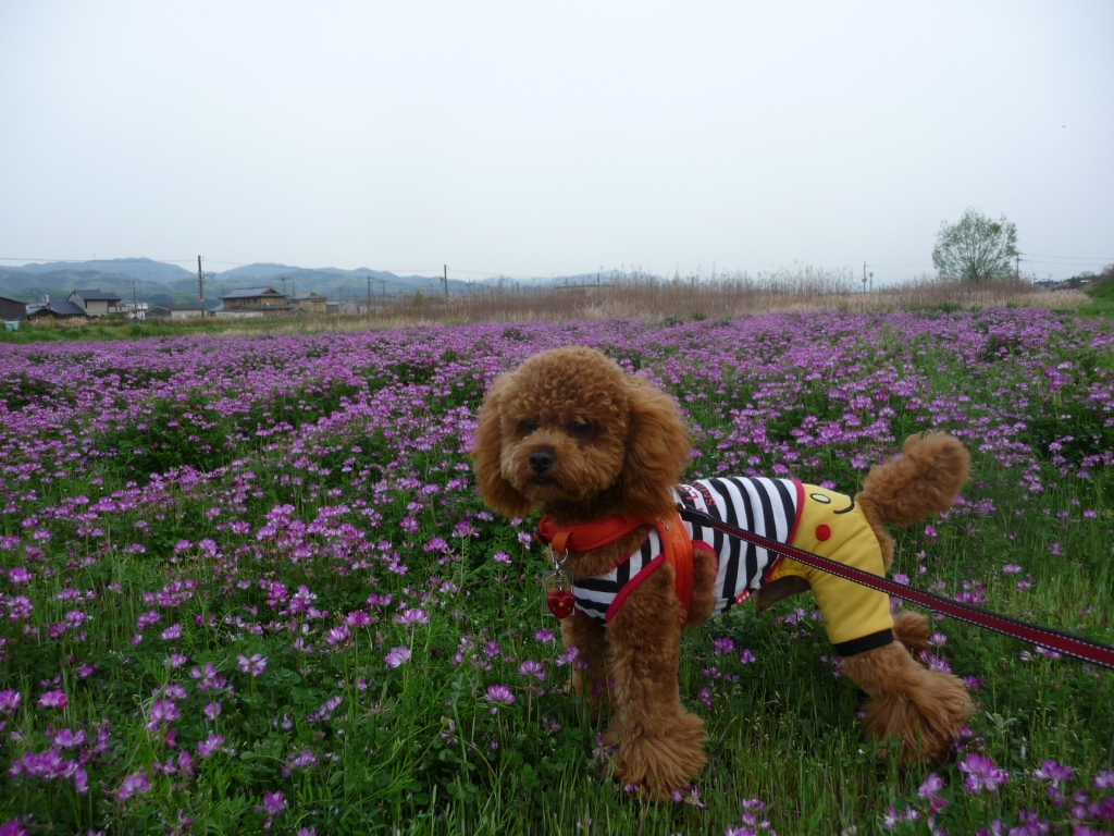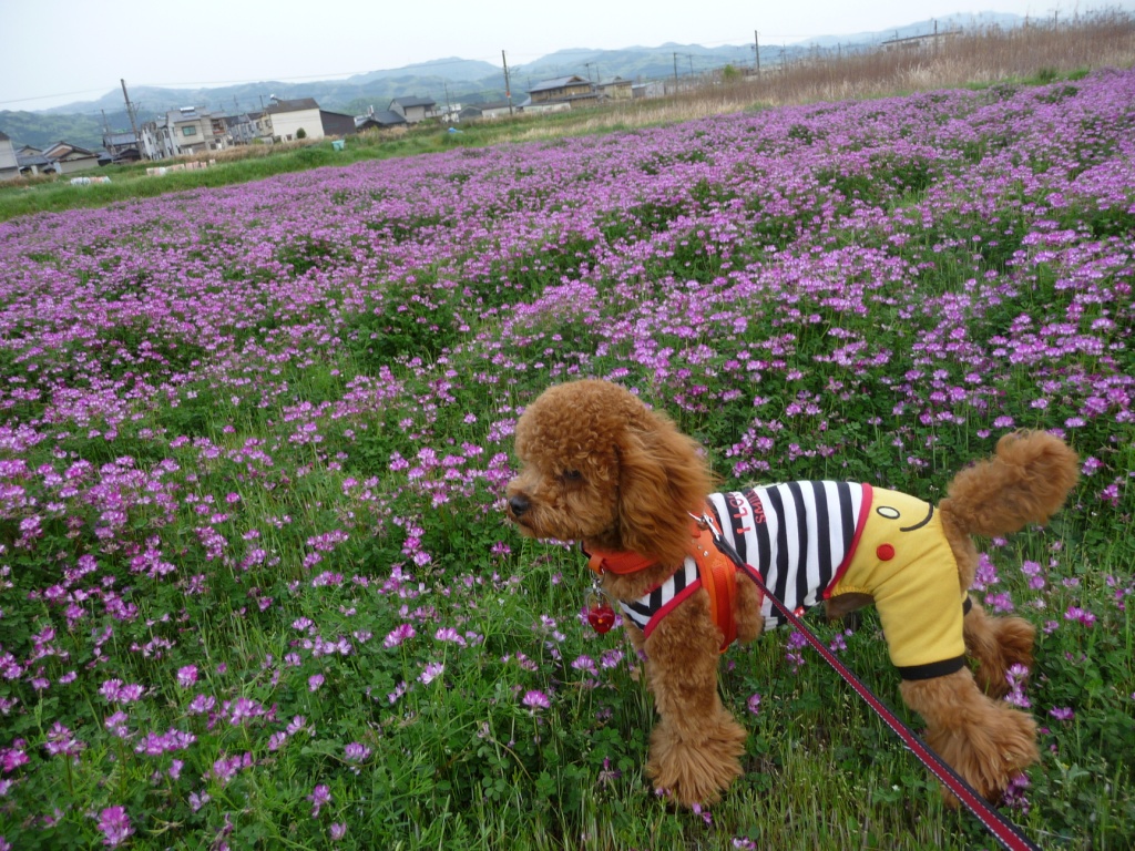 せっかくのレンゲ畑ですがチョコはワンコを睨むのが忙しいらしく、可愛く写真は撮れなかった・・・・