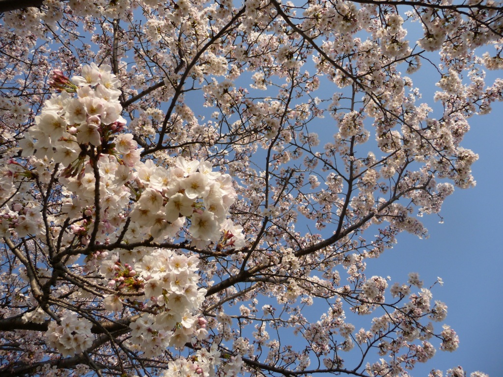公園が桜で覆われてます。